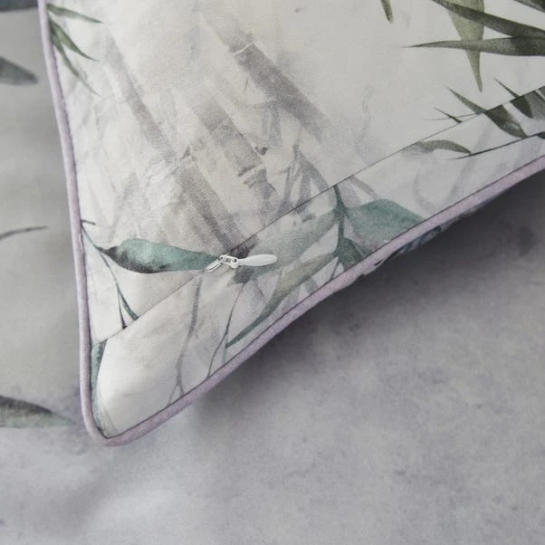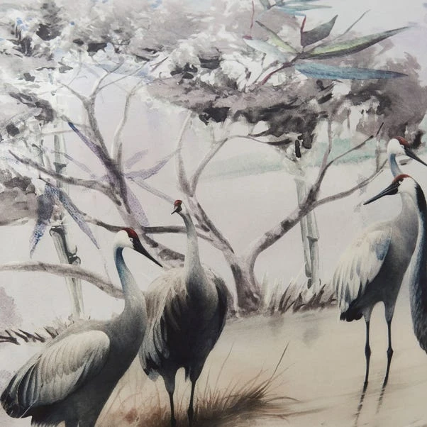 Elevate your bedroom decor with our scenic lagoon pillowcases, where cranes and nature’s foliage blend seamlessly in a stunning digital print. Digitally printed on exquisite 300 thread count cotton sateen, this conversational design is both striking and sophisticated. The reverse features an alternative bamboo foliage print, offering versatility in styling. Crafted from 100% cotton with a 10-year guarantee, this sham ensures both comfort and durability. Complete the look with our coordinating cushion, and pair it with Burford curtains and throw in teal for a cohesive and stylish aesthetic.