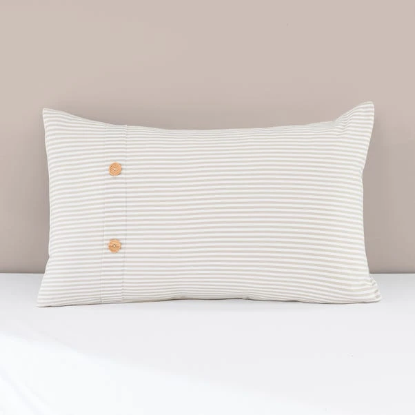 Designed with a relaxed, printed stripe and a decorative button detail, the Khai duvet cover and pillowcase set has been made from a soft to touch recycled polyester for easy care. Why not pair with our matching Khai Stripe Oxford pillowcase and blackout lined curtains for uninterrupted sleep?
